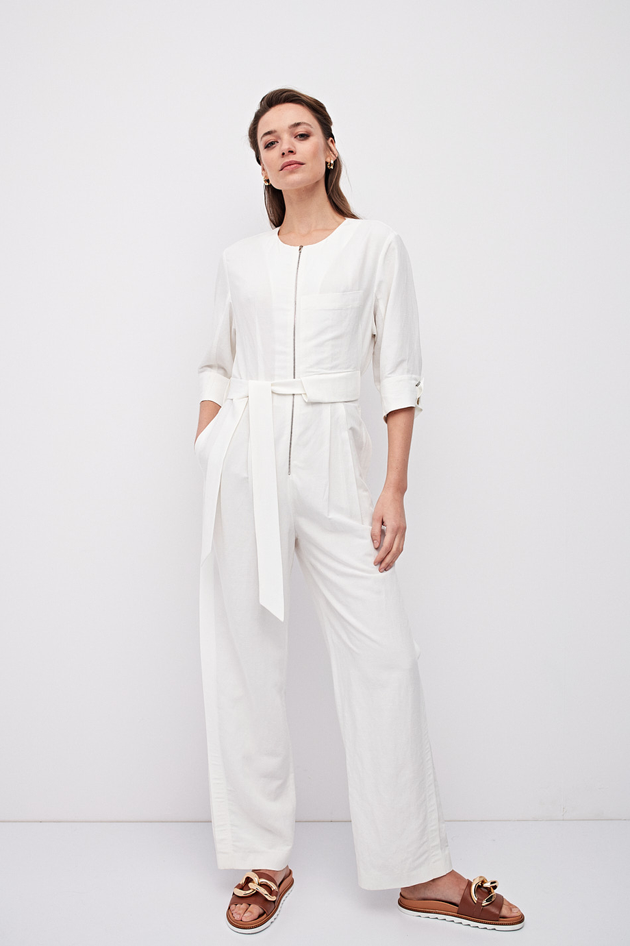 - Biały damski kombinezon z lnem