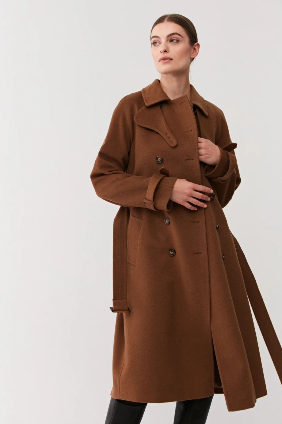 Elegancki wełniany płaszcz trencz z kaszmirem