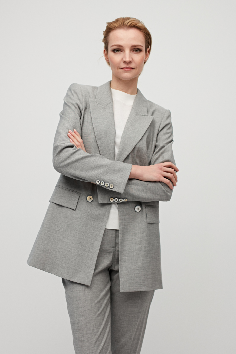 Modelka na zdjęciu ma 177 cm wzrostu, nosi rozmiar 36.