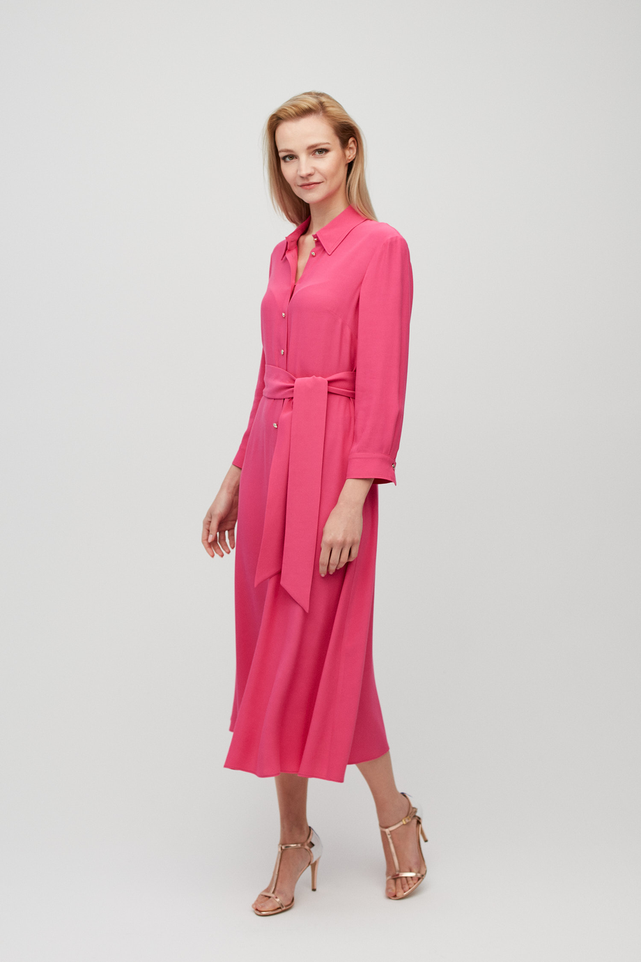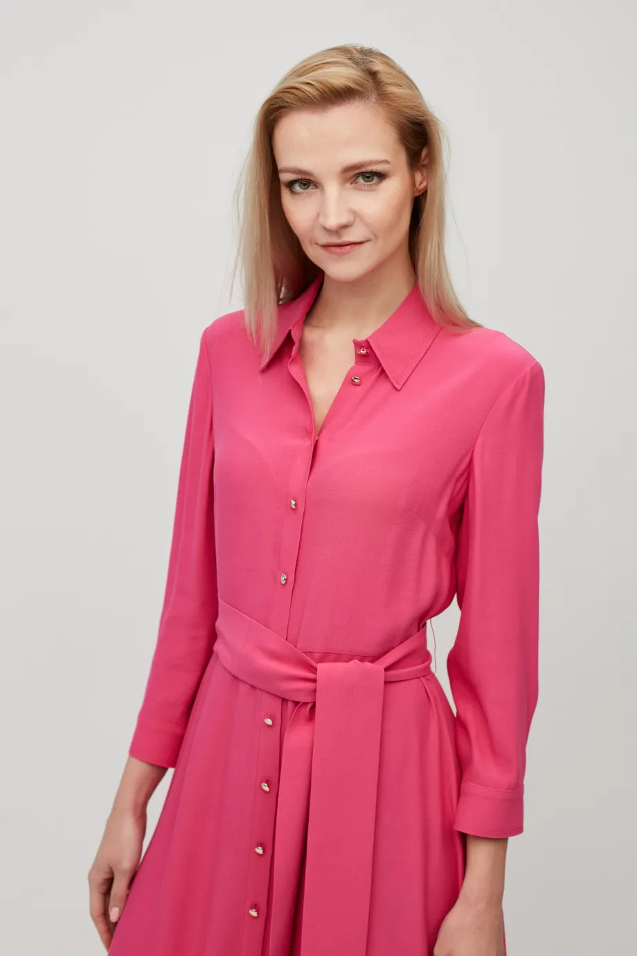 Różowa sukienka szmizjerka z paskiem