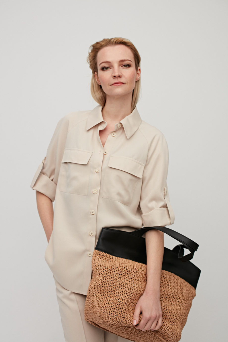 Koszula z kieszeniami Patrizia Aryton ma barwę jasnego, świetlistego beżu, który fantastycznie łączy się z czernią, bielą, granatem czy wszelkimi innymi odcieniami beżu. Doskonale współgra także z hitowymi w tym sezonie taupe, amarantem, błękitem, czerwienią i kobaltem.