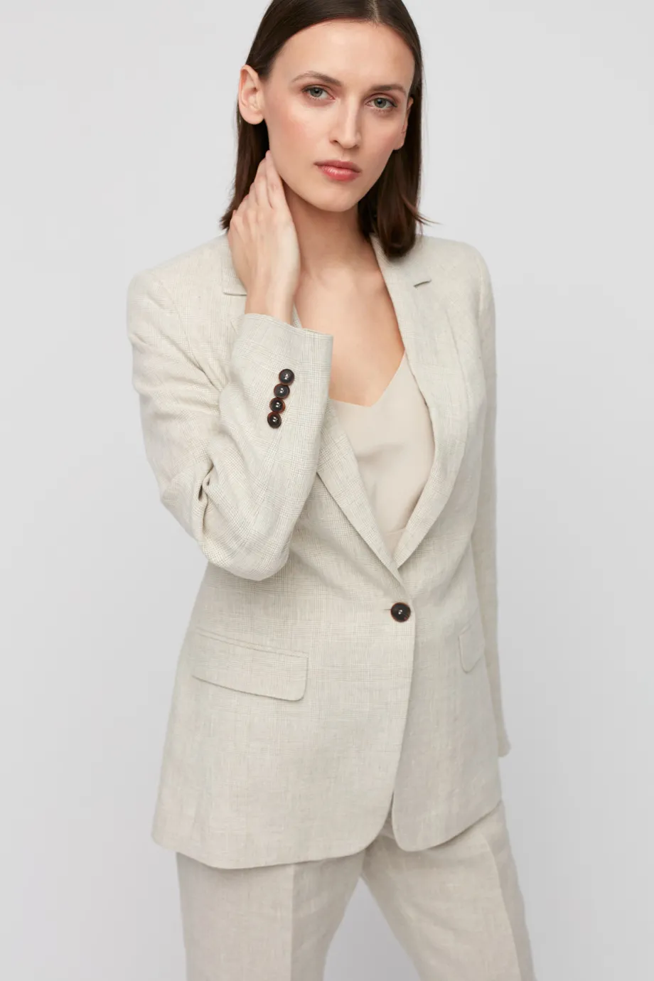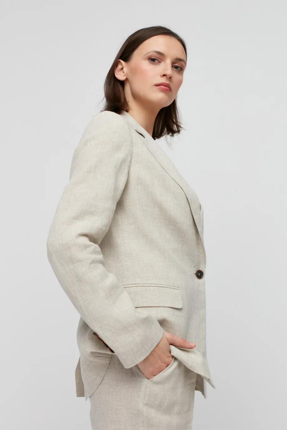 - Lniany żakiet w kratę