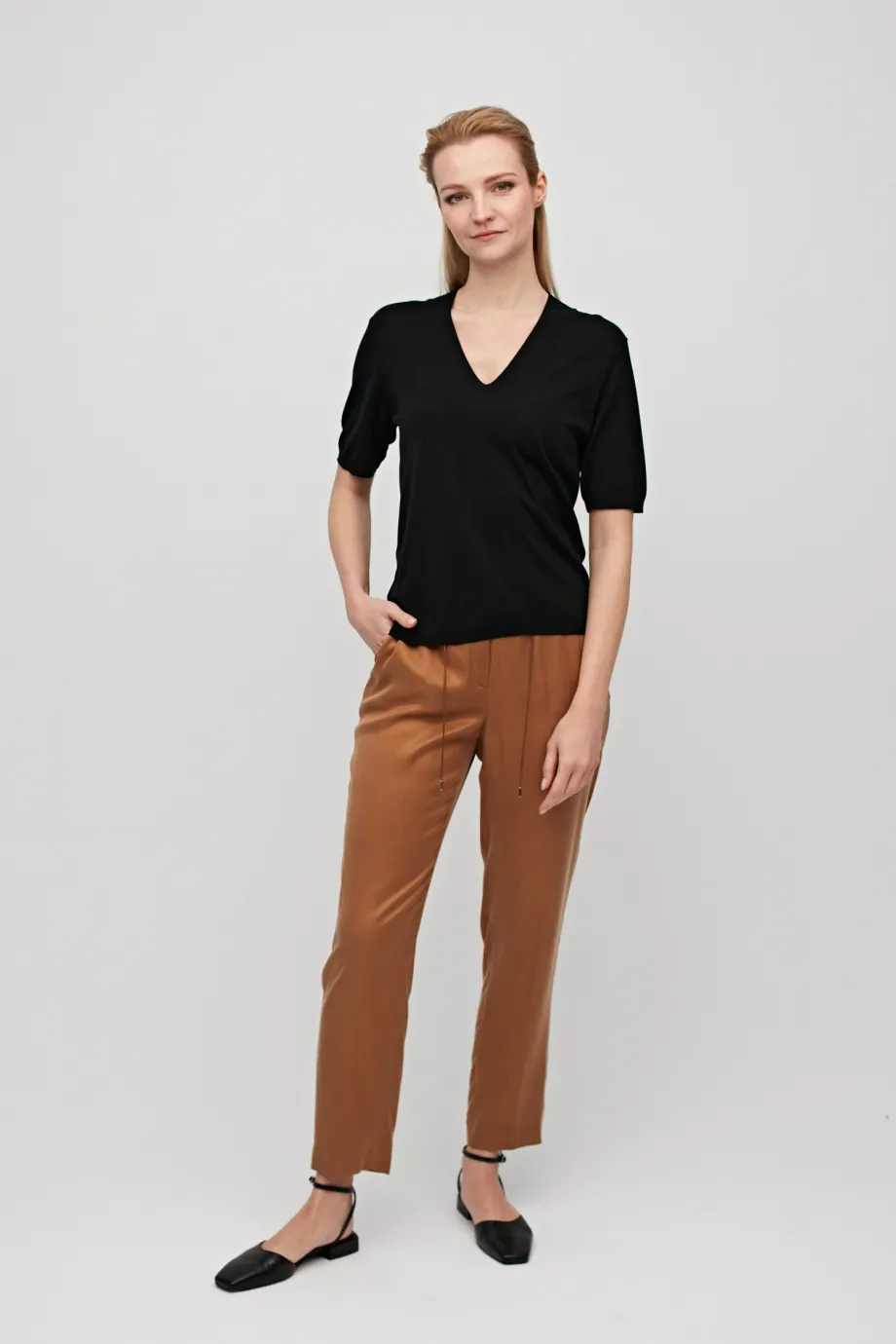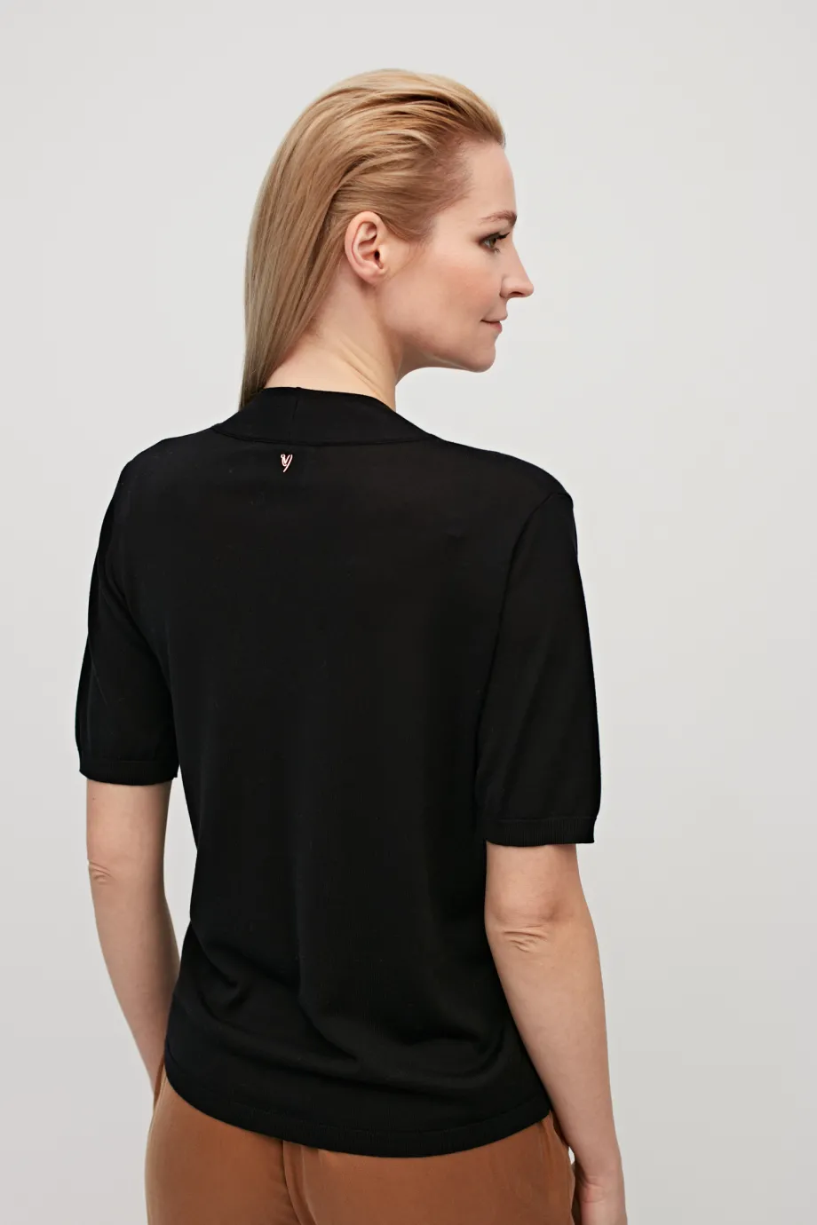 Czarna bluzka z krótkim rękawem jest jednym z obowiązkowych składników kobiecej szafy kapsułowej. Model od Patrizia Aryton to perfekcyjny smart casualowy basic na okres przejściowy, a nawet zimę. Wszystko za sprawą uniwersalnego kroju i znakomitego składu materiału, który zapewnia ekskluzywny look, niezrównaną wygodę i trwałość ubrania na lata.