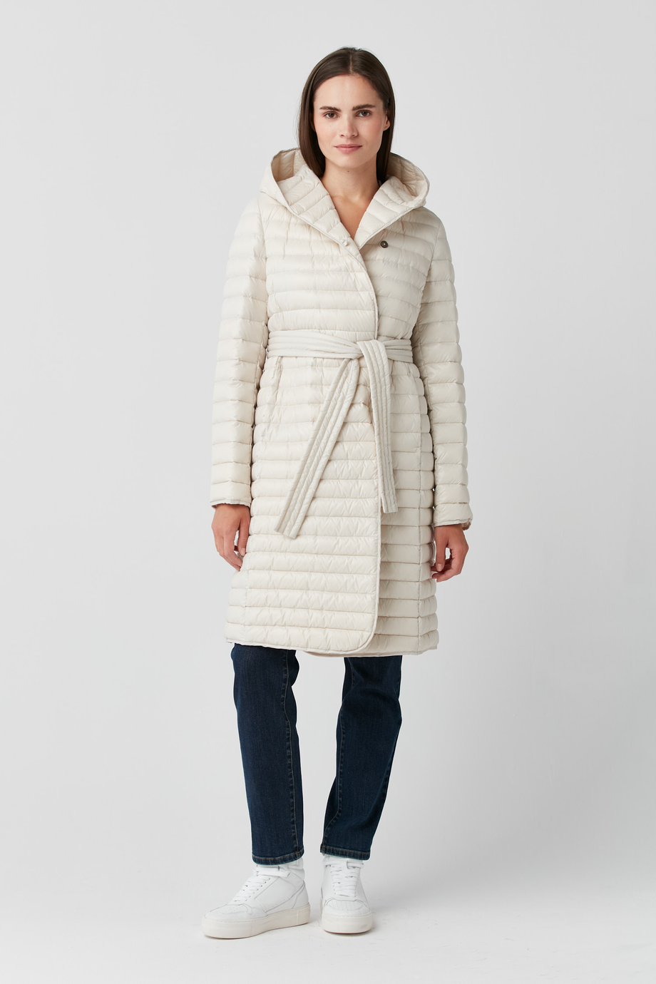 Wypełniona mieszanką kaczego puchu (90%) i kaczych piór (10%) nasza beżowa kurtka z kapturem zapewnia lekkość oraz doskonałą izolację termiczną. Produkt zawiera nietekstylne części pochodzenia zwierzęcego. Dostępna jest w różnych rozmiarach od 34 do 44,5. Wyglądaj stylowo tej zimy w naszej puchowej kurtce z paskiem i kapturem! Sprawdź też pozostałe propozycje od Patrizia Aryton!