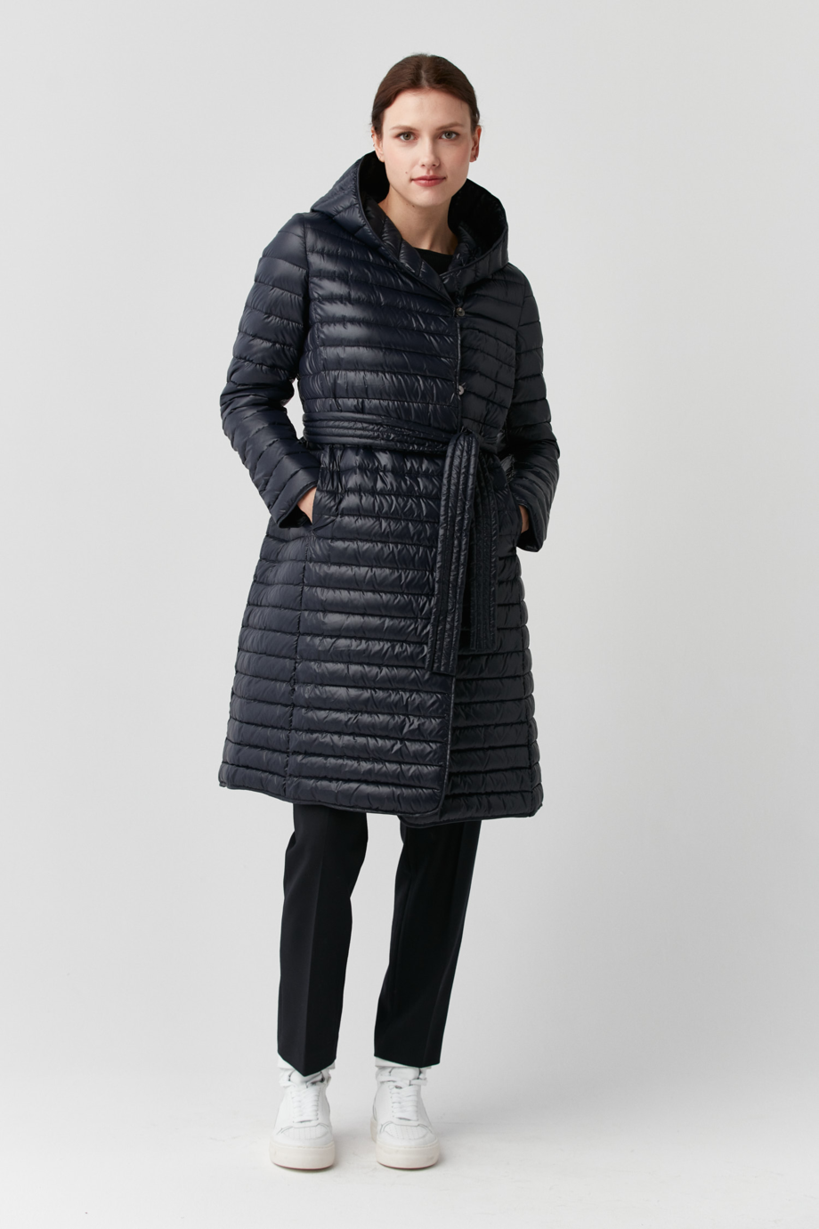 Kurtka puchowa z kapturem Mila w głębokim odcieniu atramentowego granatu jest kwintesencją elegancji i stylu. Ten ponadczasowy kolor doskonale komponuje się z różnymi stylizacjami, od biznesowych po casualowe. Eleganckie zapięcie na guziki i pasek nadają kurtce unikatowego charakteru, podkreślając sylwetkę i dodając klasy każdemu outfitowi. Nasza lekka kurtka z kapturem może być noszona samodzielnie lub jako warstwa docieplająca pod płaszcz, co daje Ci dodatkowe możliwości stylizacyjne. Model ten występuje także w ponadczasowym kolorze camelowym oraz w odcieniu zimnego beżu.
