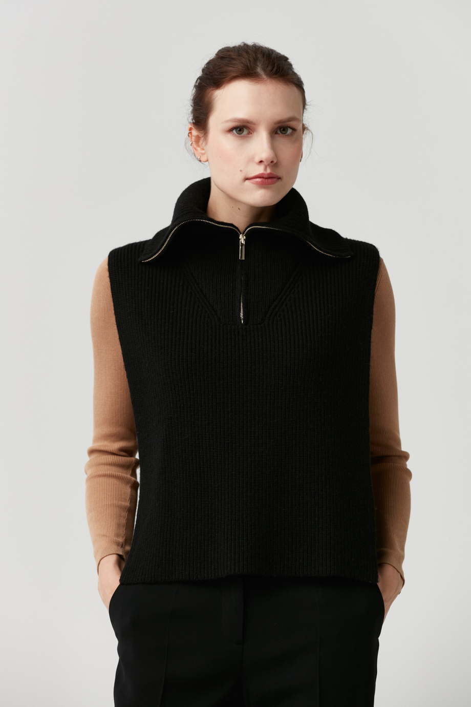 Czarna kamizelka, z rozpinanym golfem, damska należy do kategorii produktów, które możesz wystylizować na wiele sposobów. Kiedy potrzebujesz docieplenia wełnianego płaszcza, traktuj ją jako dodatkową warstwę izolacji. Podczas chłodnych dni w pracy kamizelka merino sprawdzi się jako zamiennik swetra lub marynarki - wystarczy że założysz ją na koszulę czy elegancką bluzkę. Możesz też wykorzystać ją za każdym razem, gdy wychodzisz w płaszczu o głębokim wcięciu i nie masz czasu lub pomysłu na dobranie szala czy komina.
