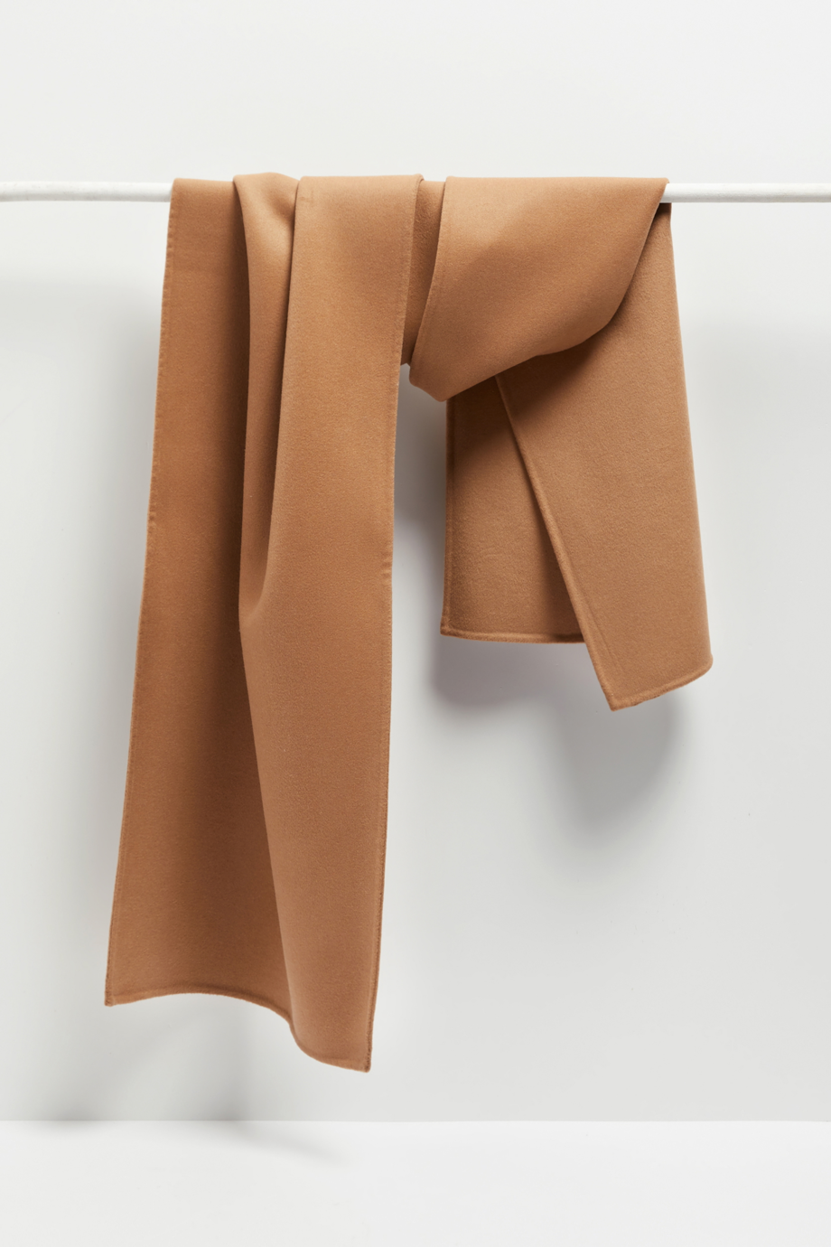 Camelowy szalik wełniany damski z tkaniny doubleface należy do prestiżowej serii Luxury Line, składającej się ze starannie wyselekcjonowanych form wykonanych z najszlachetniejszych surowców. Model uzupełni Twoje najbardziej wykwintne outfity lub wyniesie codzienne sety na wyższy poziom. Wraz z okryciami w tym samym kolorze, występującymi w naszej kolekcji, pomoże Ci stworzyć supermodne kompozycje tonalne i total looki. Do kompletu polecamy też jednopalczaste rękawiczki z dokładnie tej samej tkaniny.
