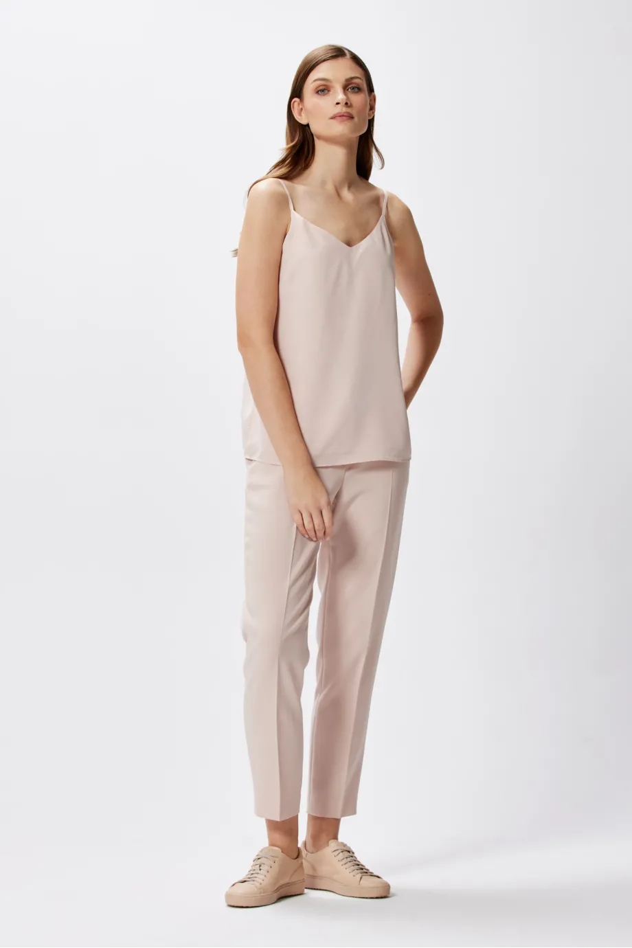 Jedwabny top na ramiączkach Patrizia Aryton pochodzi z serii Dolce Vita. To elementy garderoby zaprojektowane z myślą o celebrowaniu ważnych wydarzeń rodzinnych i osobistych, ale też uroczystości firmowych i innych okazji, na które wybieramy outfity o charakterze oficjalnym z nutą stylu koktajlowego. Różowy top Mari jest przykładem ubrania bardzo wszechstronnego, które pomoże Ci też zbudować modny i wygodny biznesowy look na lato.