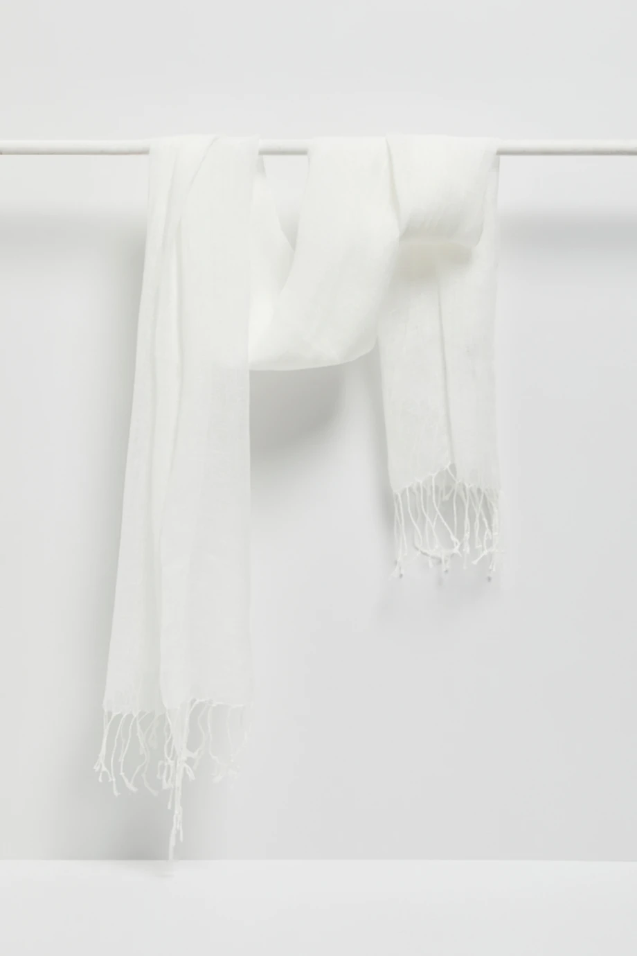 - Lniany szal w delikatnej mlecznej bieli to elegancki dodatek, który doda subtelności każdej stylizacji
