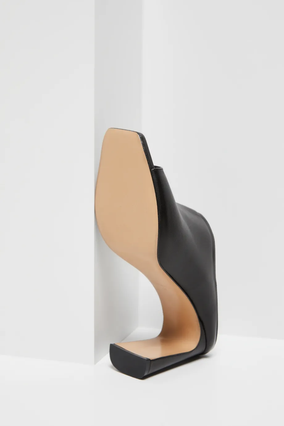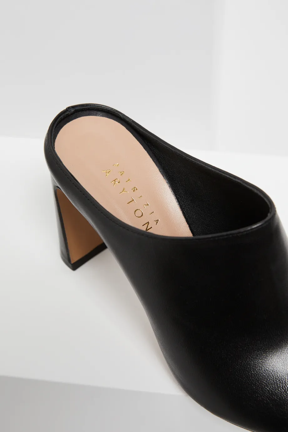 Ten model to czarne klapki ze skóry, damskie, osadzone na wyższym obcasie. Przydają się, gdy chcemy wydłużyć sylwetkę, ale też tworzą idealnie zgrany duet z hitem ostatnich sezonów - spodniami o długich i szerokich nogawkach. Inne modne detale butów to ścięty nosek oraz subtelne sygnowanie marki w postaci złotego napisu Patrizia Aryton na wkładce.