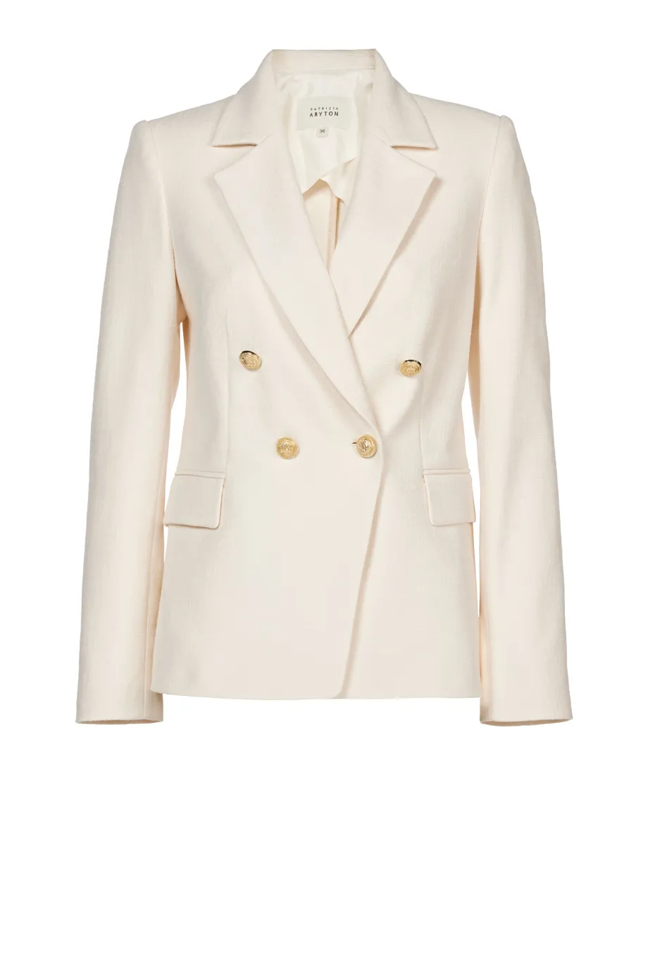 Biały żakiet taliowany Patrizia Aryton przepięknie komponuje się z innymi jasnymi odcieniami bazowymi, w tym modnymi aktualnie chłodną bielą, morelowym beżem i pudrowym różem. Topowe duety kolorystyczne tego sezonu to również śmietana-oranż i śmietana-lila. Możesz także nosić ten elegancki biały żakiet do sukienki, spódnicy i spodni o barwie złota czy czerni. Jeśli żakiet wraz z dobranym dołem mają zastąpić np. weselną sukienkę, załóż go na gołe ciało.