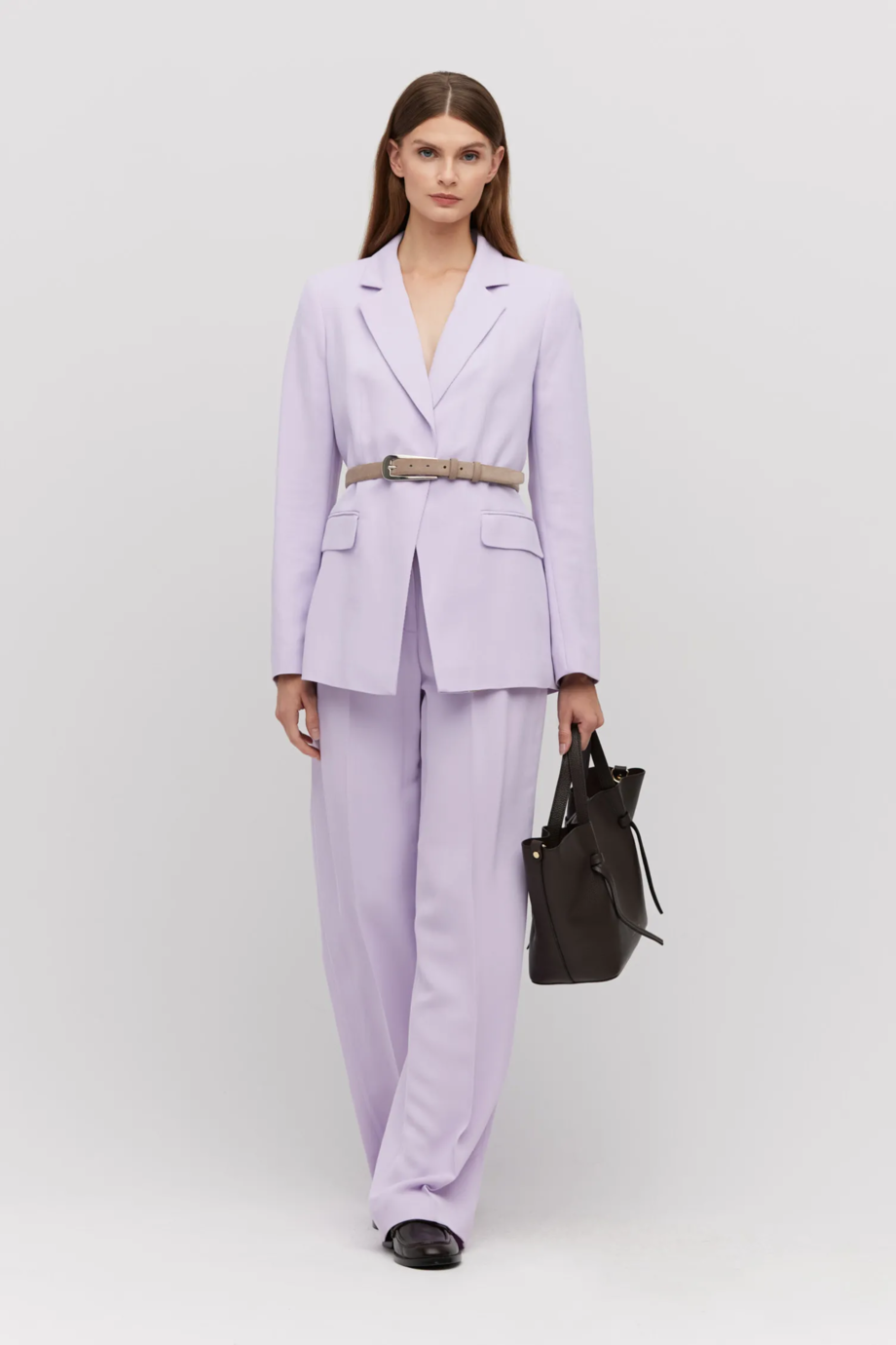 Liliowe spodnie garniturowe z szerokimi nogawkami