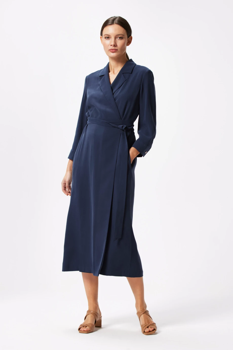 Granatowa sukienka kopertowa