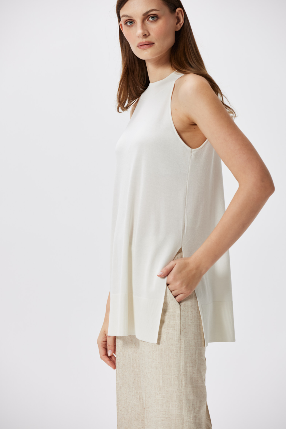 Jedwabna tunika dzianinowa bez rękawów