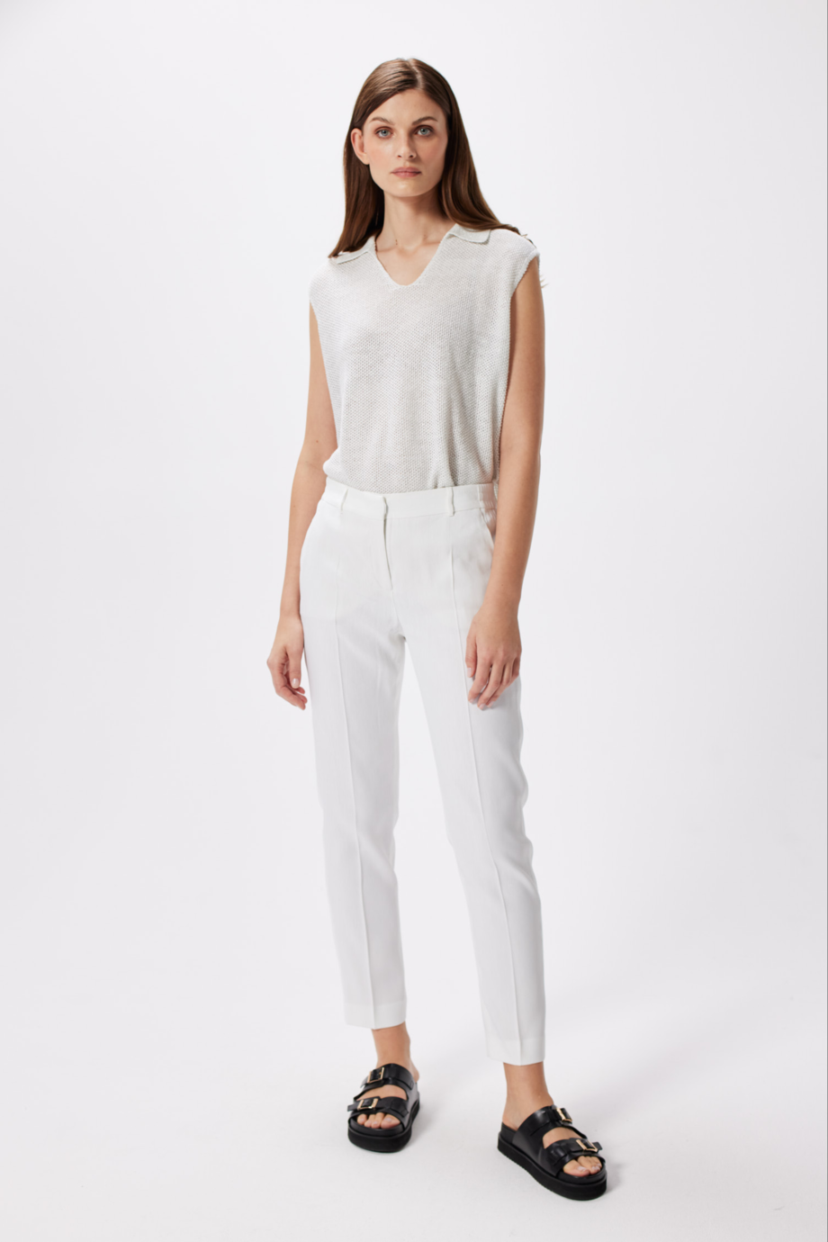 Latem białe spodnie lniane damskie Patrizia Aryton posłużą Ci nie tylko jako element zestawu biznesowego, ale też składnik każdego outfitu w stylu gentlewoman, niezależnie od charakteru okazji. Załóż do nich jedwabny top, aby uzyskać kompozycję idealną na randkę. Postaw na dzianinową bluzkę z kapturem, a będziesz gotowa na wycieczkę z rodziną za miasto. Zastąp ją koszulką polo w wyrazistym kolorze i możesz ruszać na długi spacer z przyjaciółką. W naszej modowej kapsule na lato znajdują się też m.in. topy, sukienki, tuniki czy marynarki w tym samym odcieniu mlecznej bieli, które pomogą Ci stworzyć wysmakowane lniane total looki.