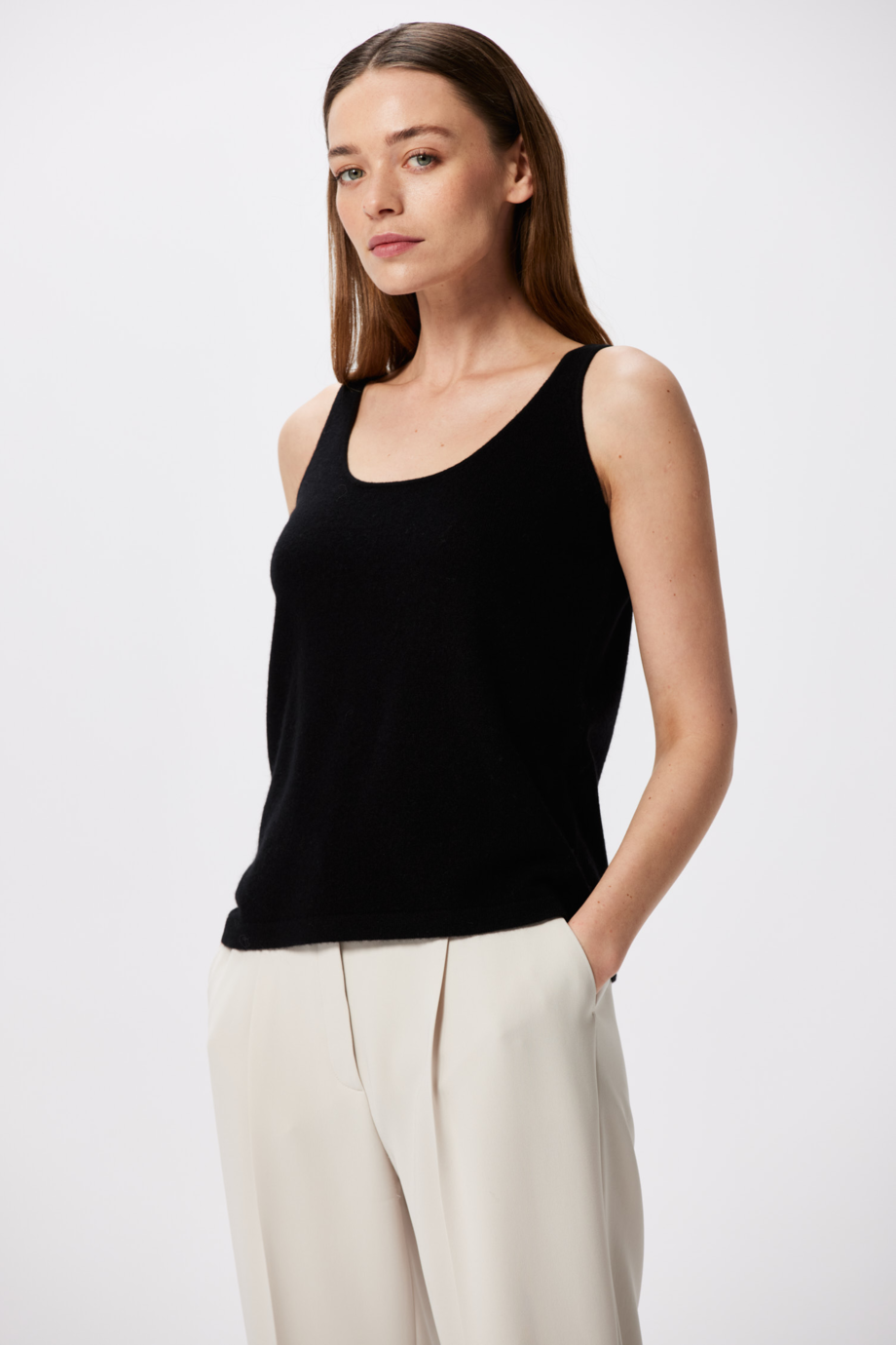 Ekskluzywne basici są naszą specjalnością! Ten top z kaszmirem to idealna baza pod żakiet i kardigan, kapitalna góra do noszenia solo z jeansami i cygaretkami, a także przyjemna dla ciała i ciepła spodnia warstwa do grubszego swetra oversize. Poznaj bliżej nasz elegancki top na szerokich ramiączkach i poczuj przyjemność w stylu quiet luxury, na którą zasługujesz!