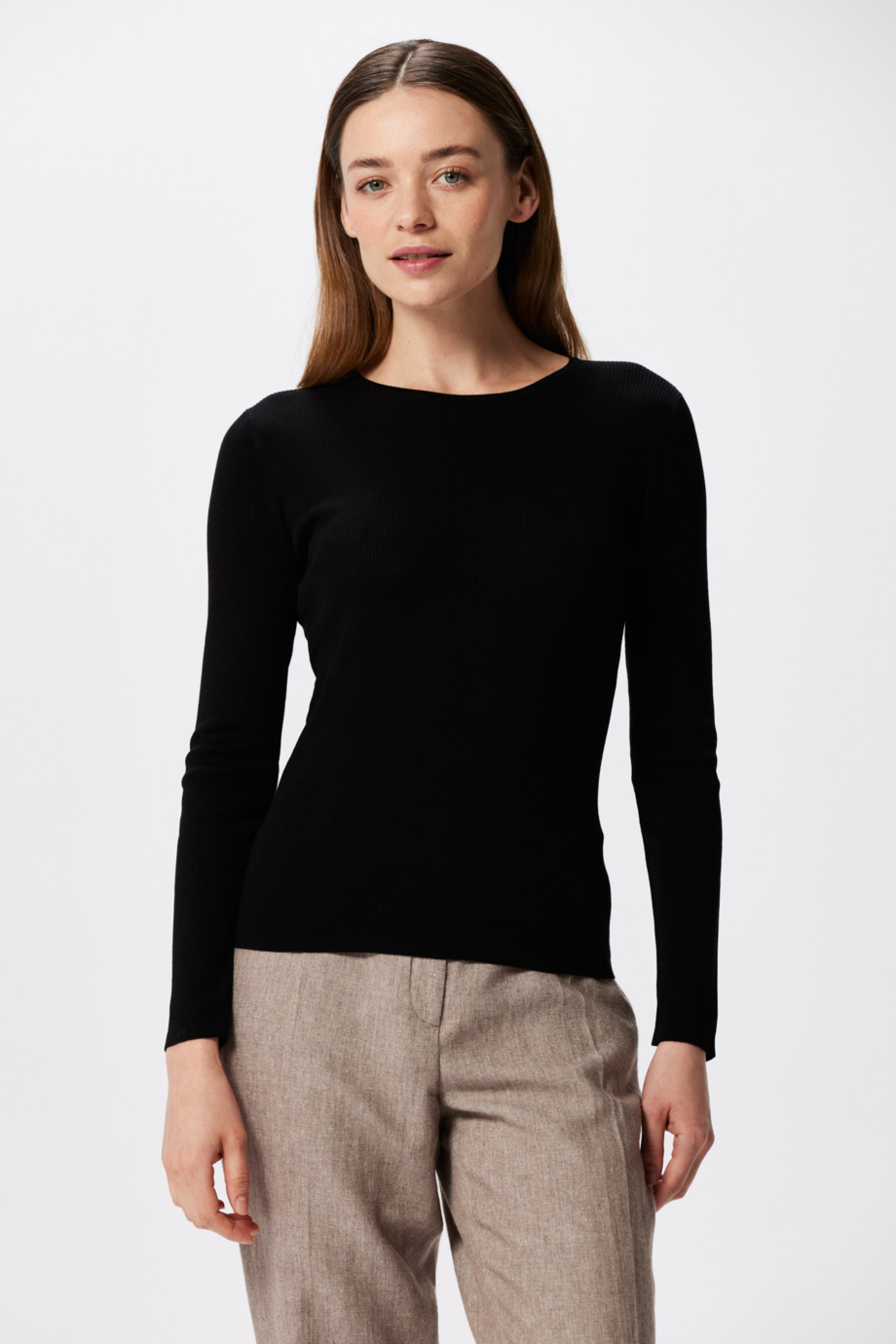 Dopasowana bluzka damska Patrizia Aryton wykonana jest z dzianiny o drobnym uigleniu 16 GG i splocie rib 2x2, dzięki czemu materiał układa się w elegancki pionowy prążek, który wyszczupla optycznie sylwetkę. Mieszanka lyocellu, jedwabiu i bawełny nadaje jej wyjątkową miękkość i lekkość, a jednocześnie trwałość, która pozwala nosić ją przez wiele sezonów.