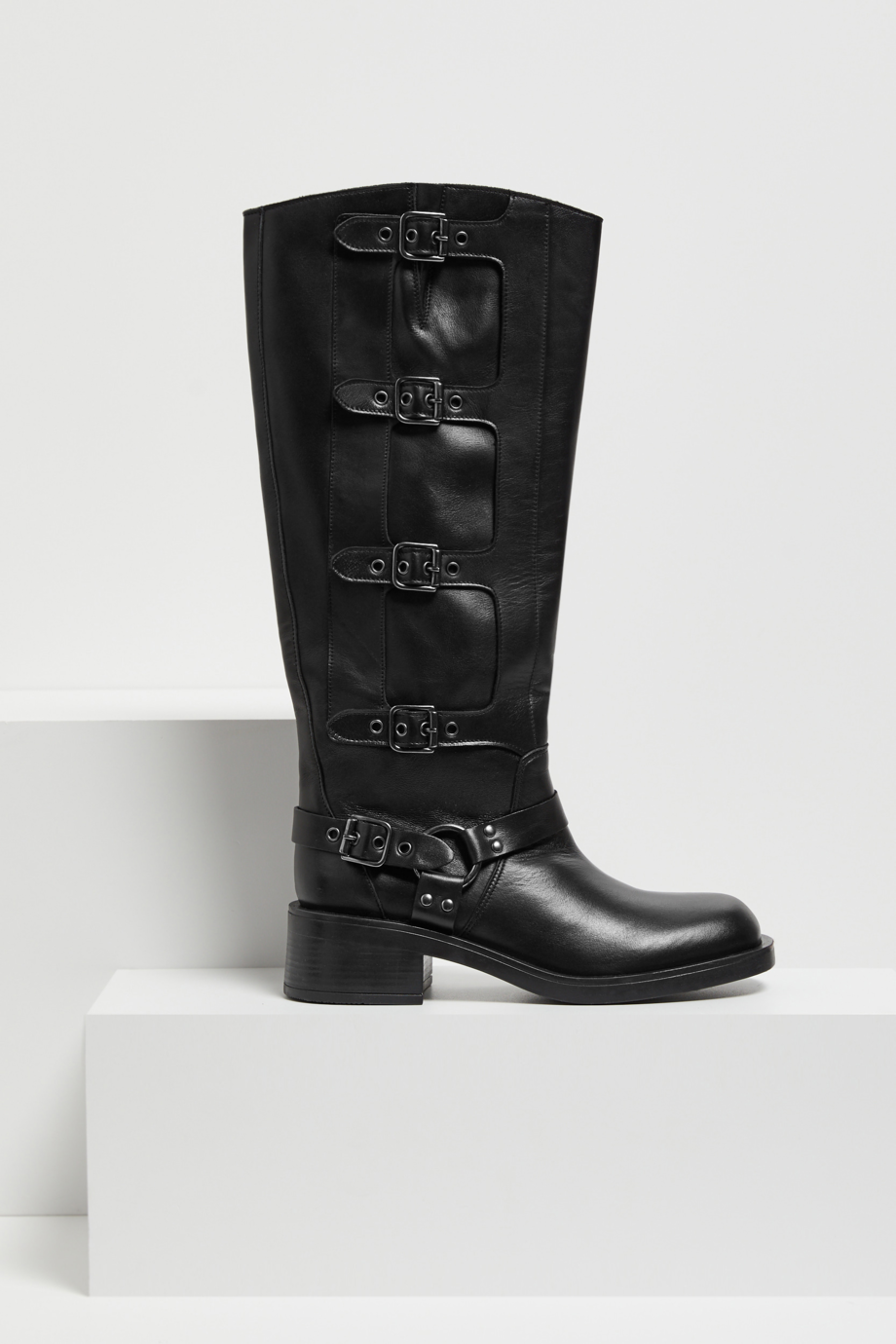 Czarne skórzane kozaki z klamrami