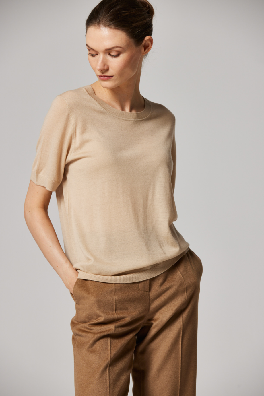 Beżowa bluzka z wełny merynosowej