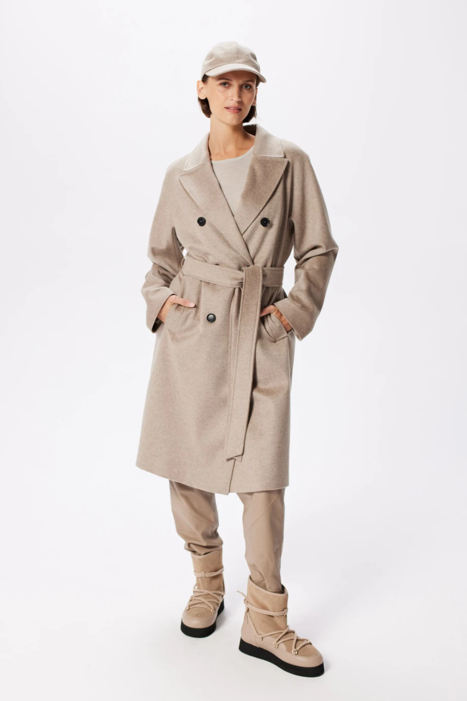 - Wełniany płaszcz z paskiem