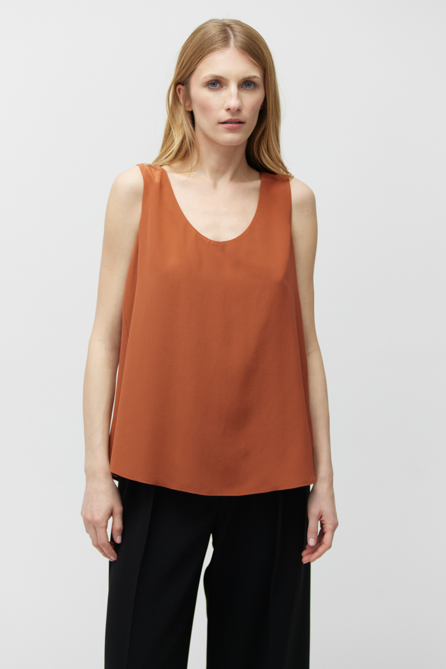 Ceglana bluzka z jedwabiu na szerokich ramiączkach