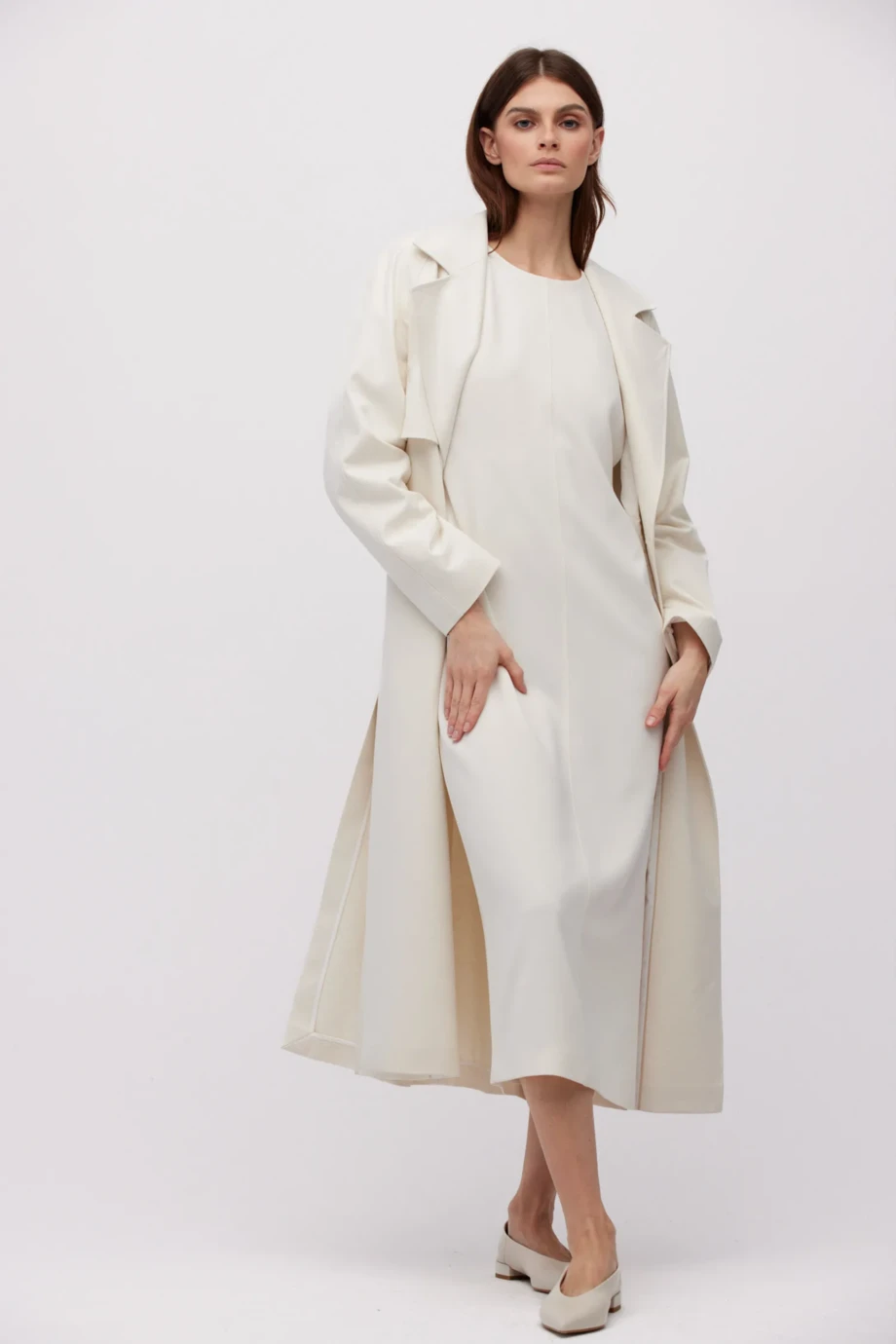 - Sukienka midi w śmietankowej bieli z rękawem kimono