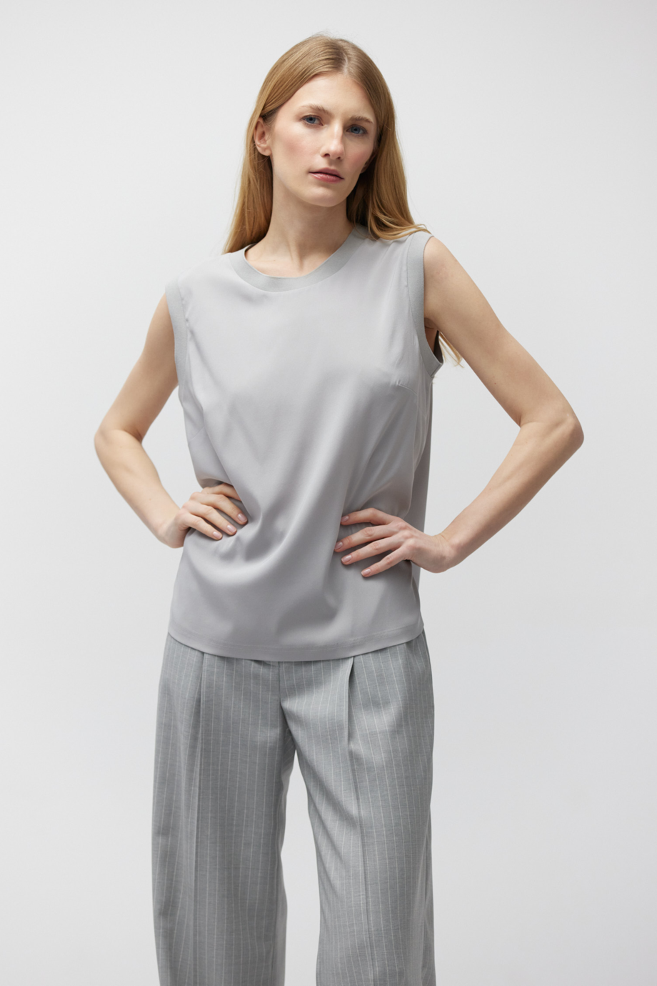 Gładka szara bluzka bez rękawów