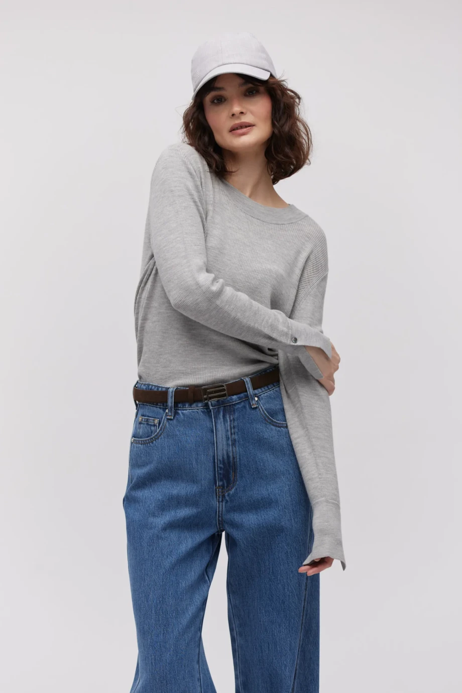 Nasza szara bluzka z długim rękawem to bluzka typu basic, którą można stylizować na wiele sposobów. Sprawdzi się w zestawieniu z klasycznymi spodniami garniturowymi, wełnianą spódnicą czy nawet ze sportowymi legginsami i marynarką. Lubimy ją za plastyczność – pożądany ton można budować dodatkami, np. biżuterią, apaszką, skórzanym paskiem lub butami w kontrastowym kolorze.
