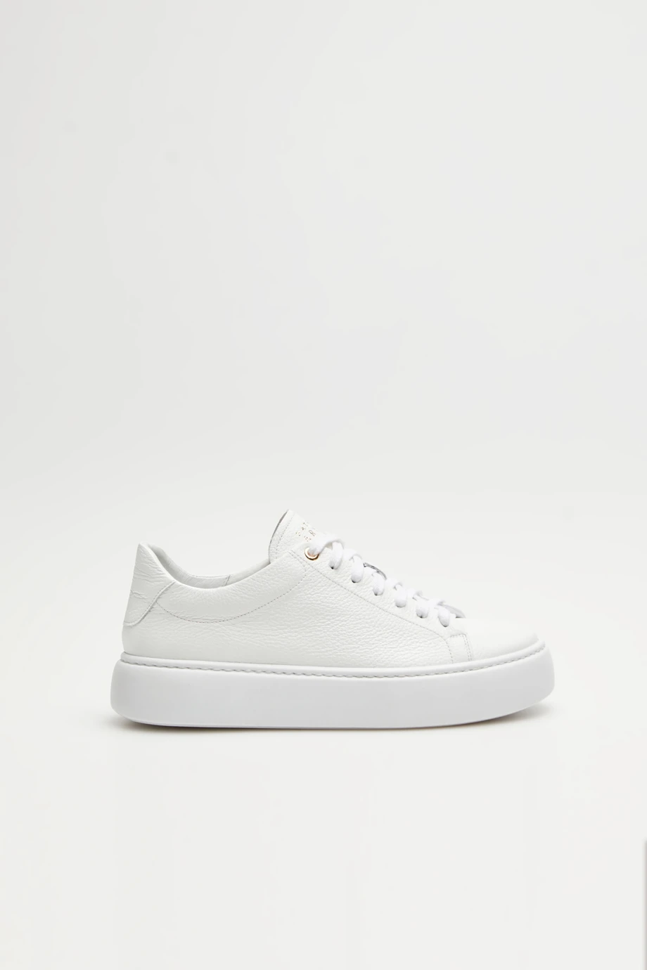 - Białe buty sportowe na wygodnej platformie, sznurowane, ze złotym logo