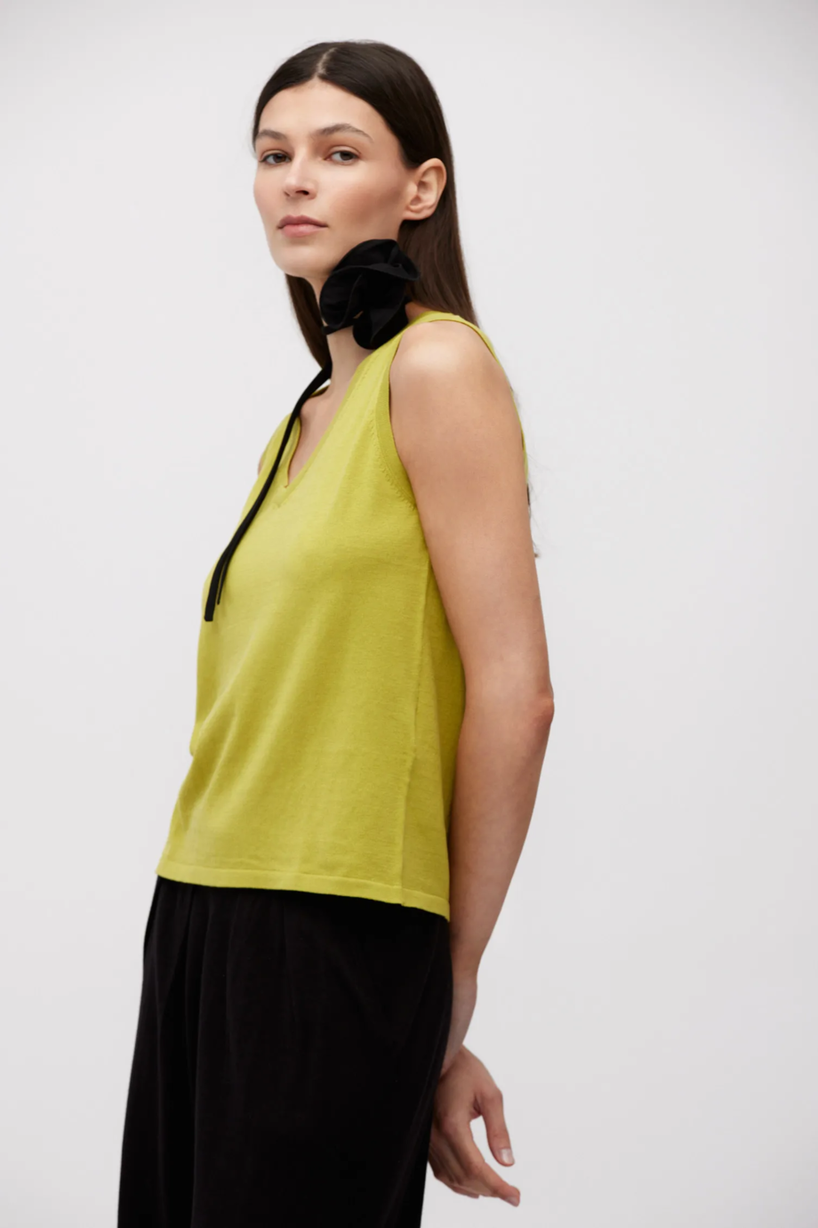 Limonkowy top na ramiączkach z dekoltem w szpic