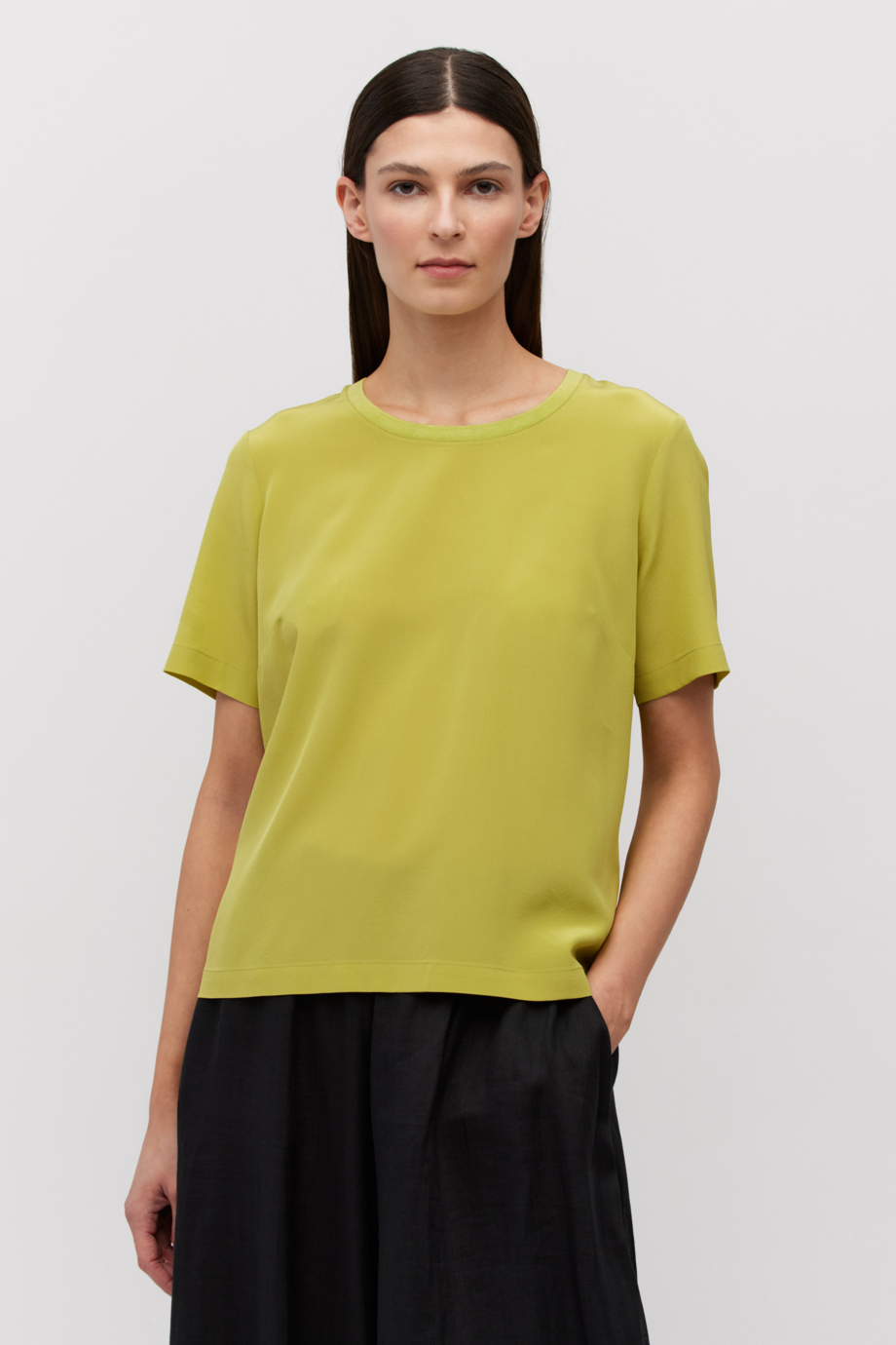 - Limonkowa, z krótkim rękawem i okrągłym dekoltem