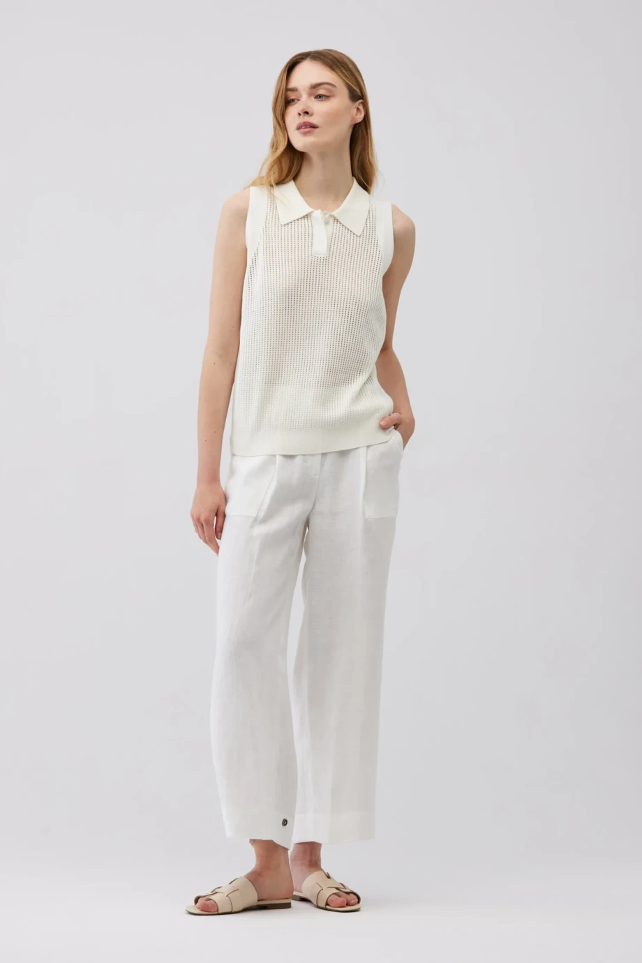 Biała bluzka polo bez rękawów