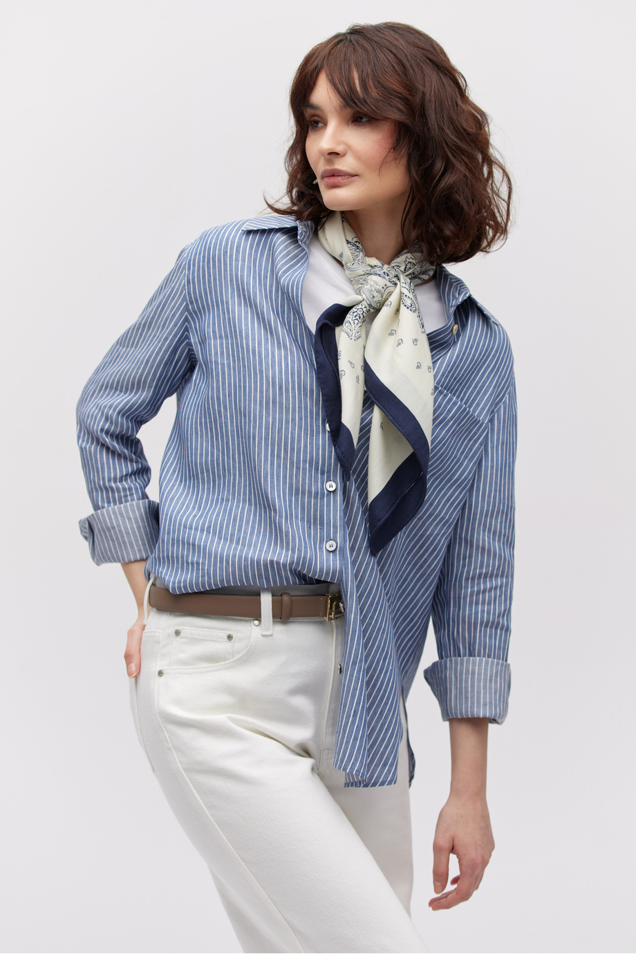 - Koszula w paski z lnu i lyocellu o prostym fasonie