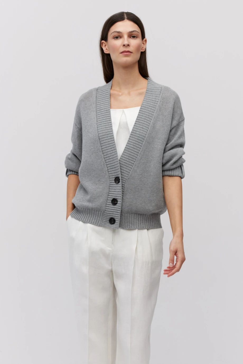 - Szary kardigan z lnem