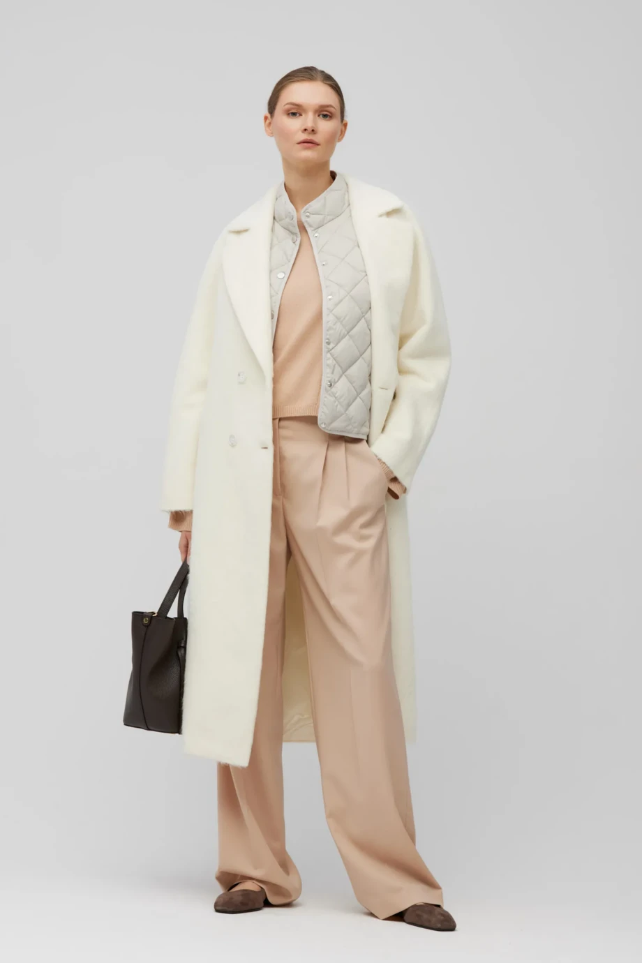 Damski elegancki płaszcz z wełny alpaki i jedwabiem