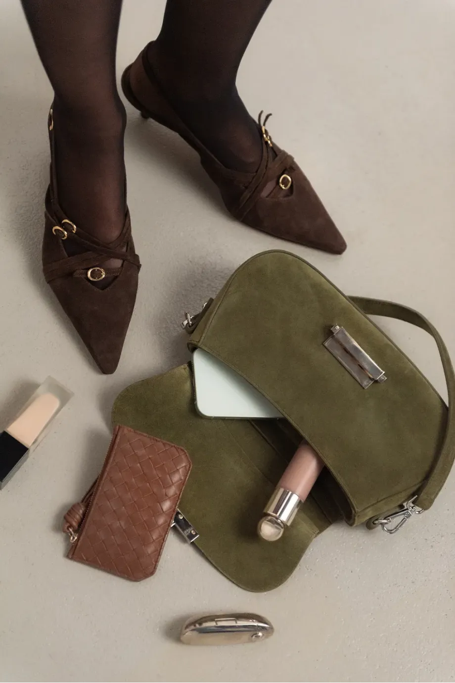 Czekoladowe buty slingback z zamszowej skóry