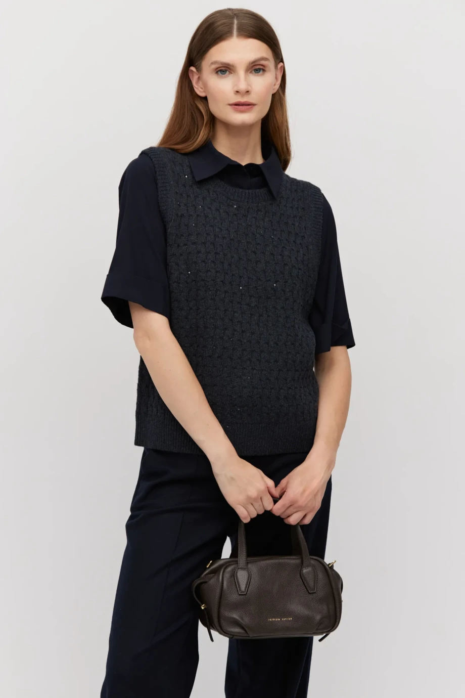 Sekretem naszej propozycji jest luksusowa mieszanka: połączenie 92% jedwabiu i 8% elastanu, które zapewnia delikatność, naturalny chłód jedwabiu oraz odrobinę elastyczności gwarantującą komfort w każdej sytuacji. Granatową koszulę znajdziesz w rozmiarach 34, 36, 38, 40, 42, 44 i 46. Poczuj lekkość luksusu i spraw, by Twoja garderoba mówiła o Tobie więcej niż tysiąc słów, wybierając najwyższej jakości produkty od Patrizia Aryton!