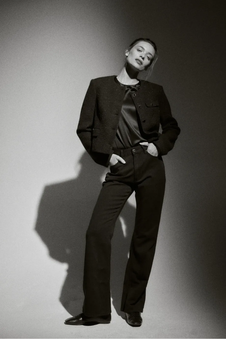 Modelka ma 178 cm wzrostu, nosi rozmiar 36.