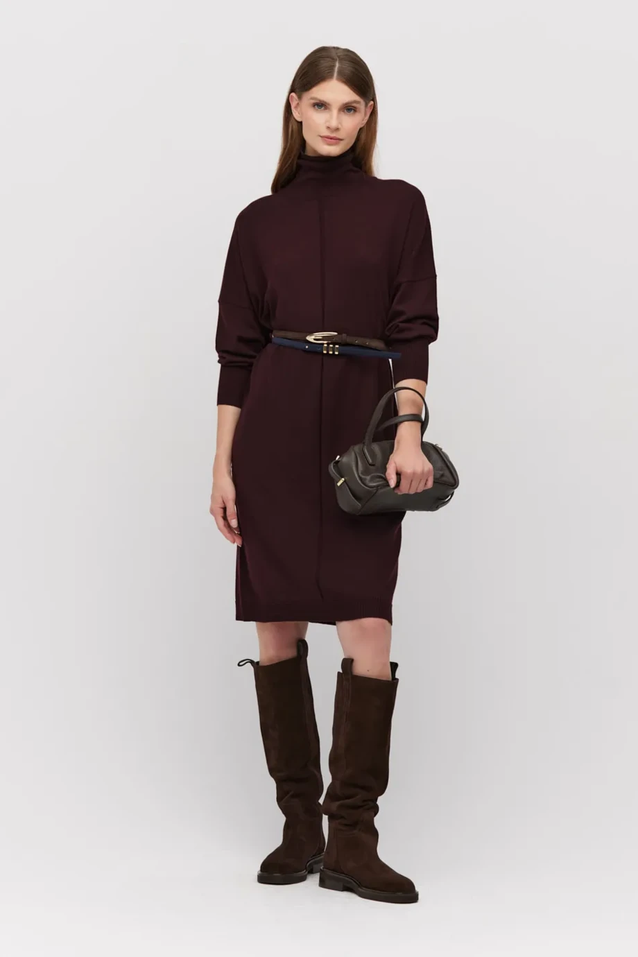 Bakłażanowa sukienka z golfem z wełny merynosowej