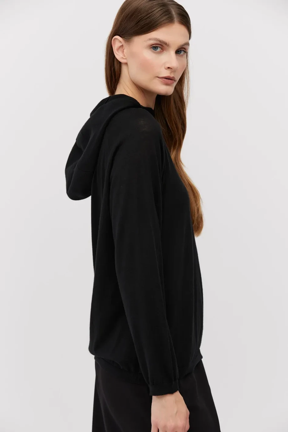 Czarna bluza z kapturem z wełny merynosowej