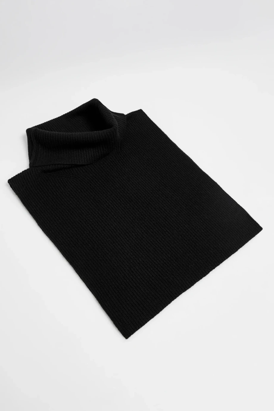 Czarny ocieplacz na szyję z golfem. Miękka dzianina z kaszmirem. Drobny splot half cardigan, wykonany na maszynie o uigleniu 18 GG.