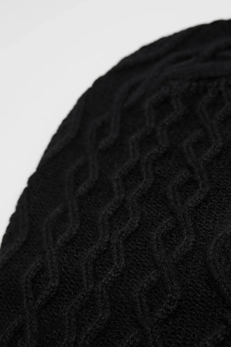 Balaclava z wełną marynosową i kaszmirem. Miękka dzianina, splot cable knit, wykonany na maszynie o uigleniu 7 GG.