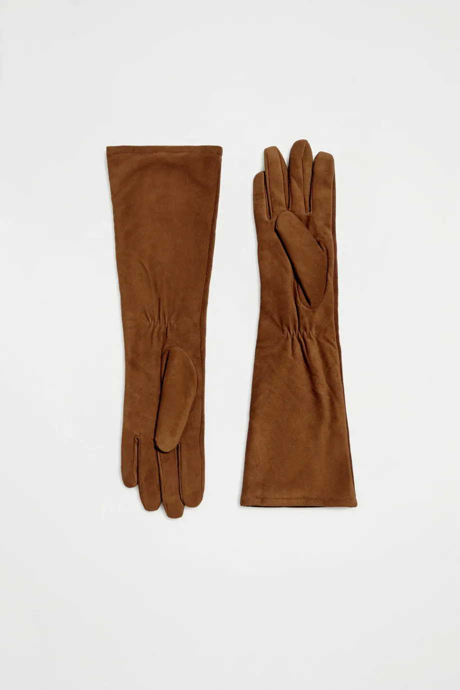 Długie rękawiczki ze skóry zamszowej