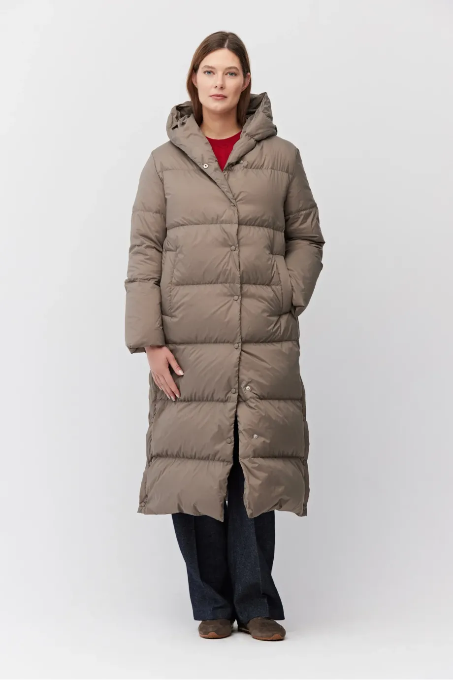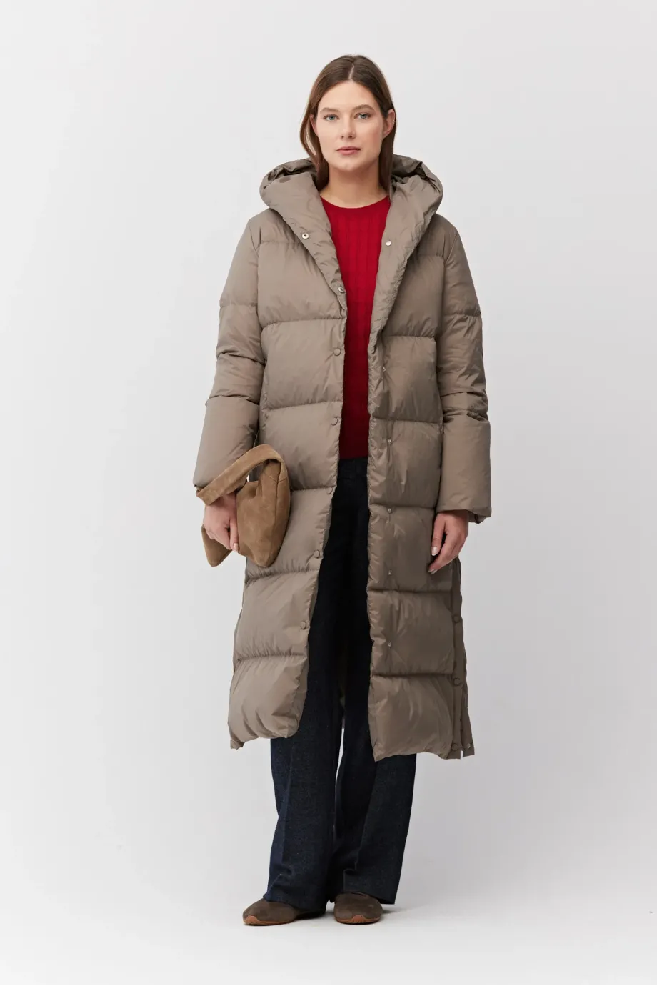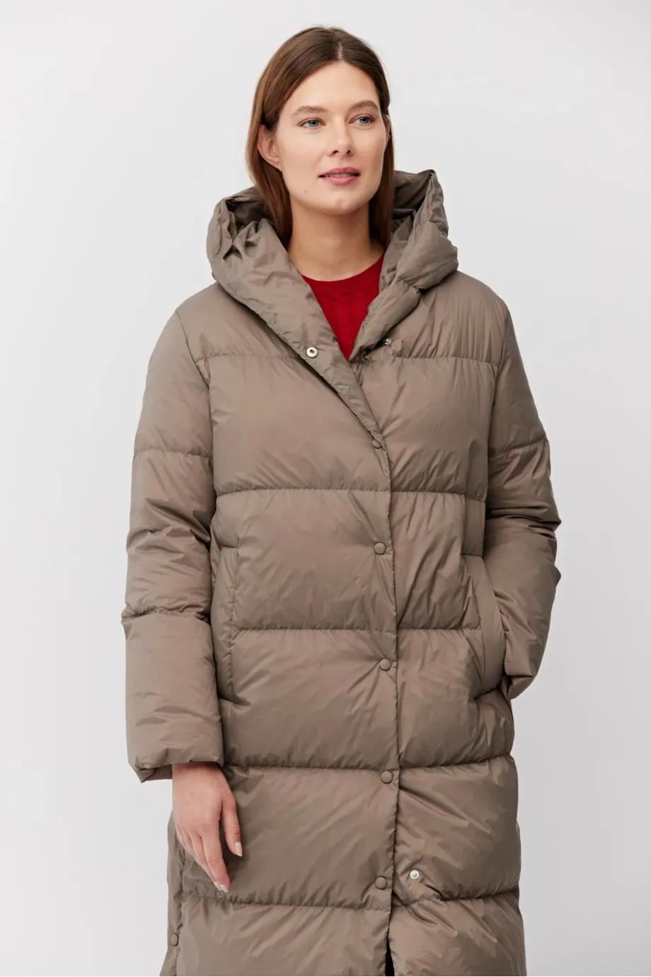 Długa kurta puchowa z kapturem