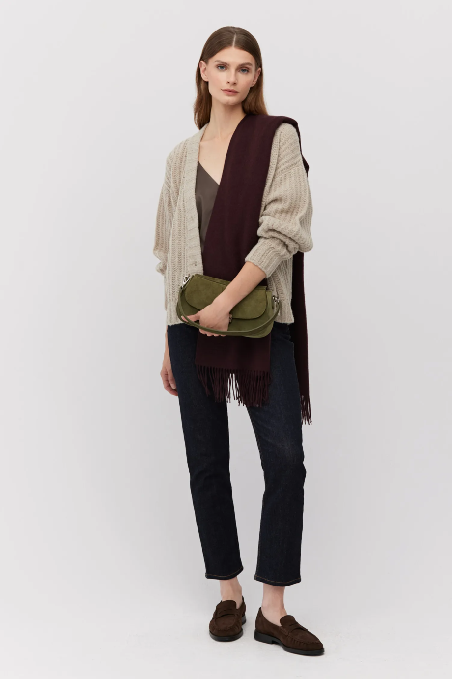 Luźny beżowy kardigan z baby alpaką