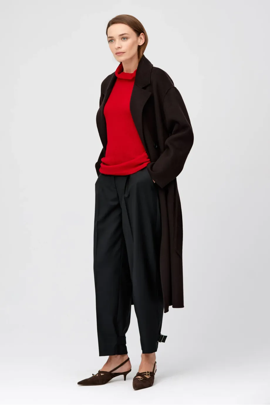 Modelka ma 178 cm wzrostu, nosi rozmiar 36/38.
