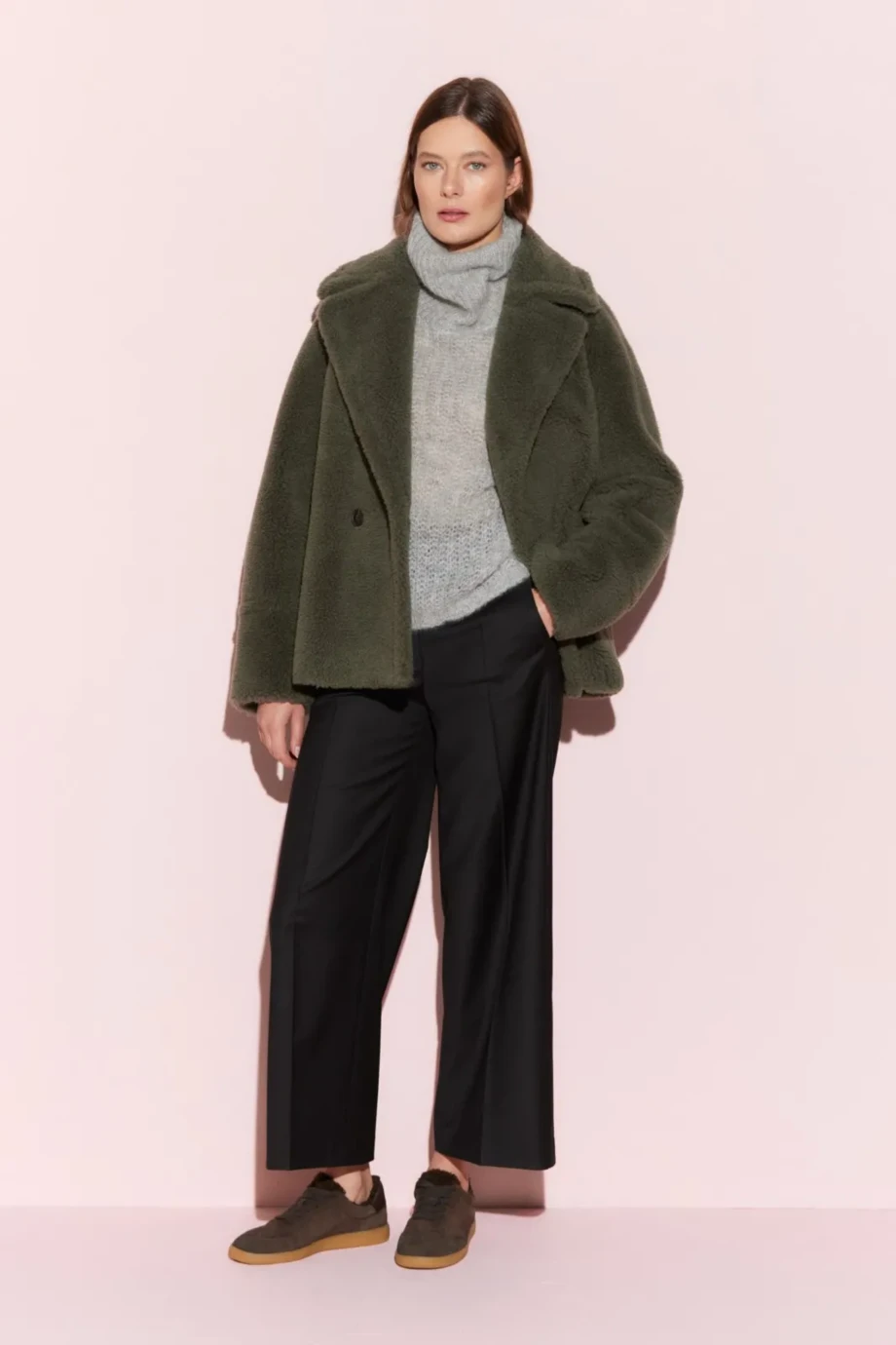 Ciemnozielona kurtka dwurzędowa z wełny teddy bear