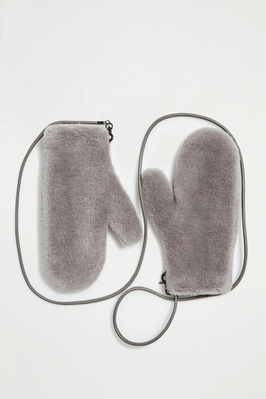 Rękawiczki z wełny teddy bear. Wełniana podszewka, odpinany skórzany pasek. Kolor szary.