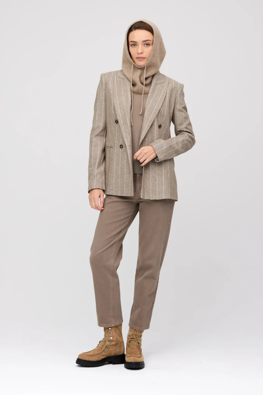 Żakiet taupe w paski z domieszką kaszmiru