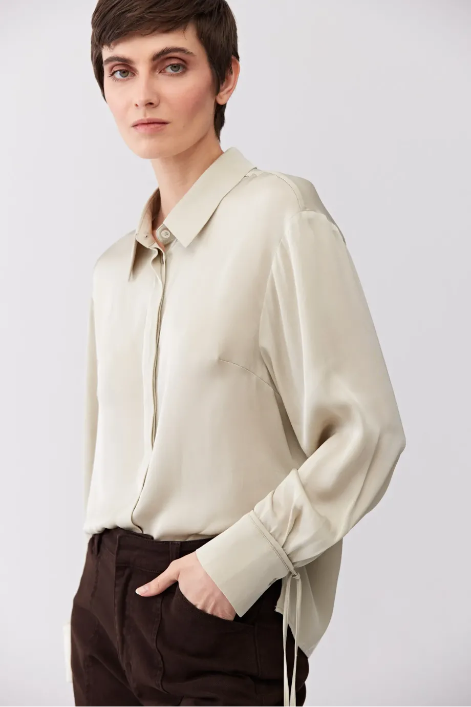 Jedwabna bluzka z wiązaniem na mankiecie